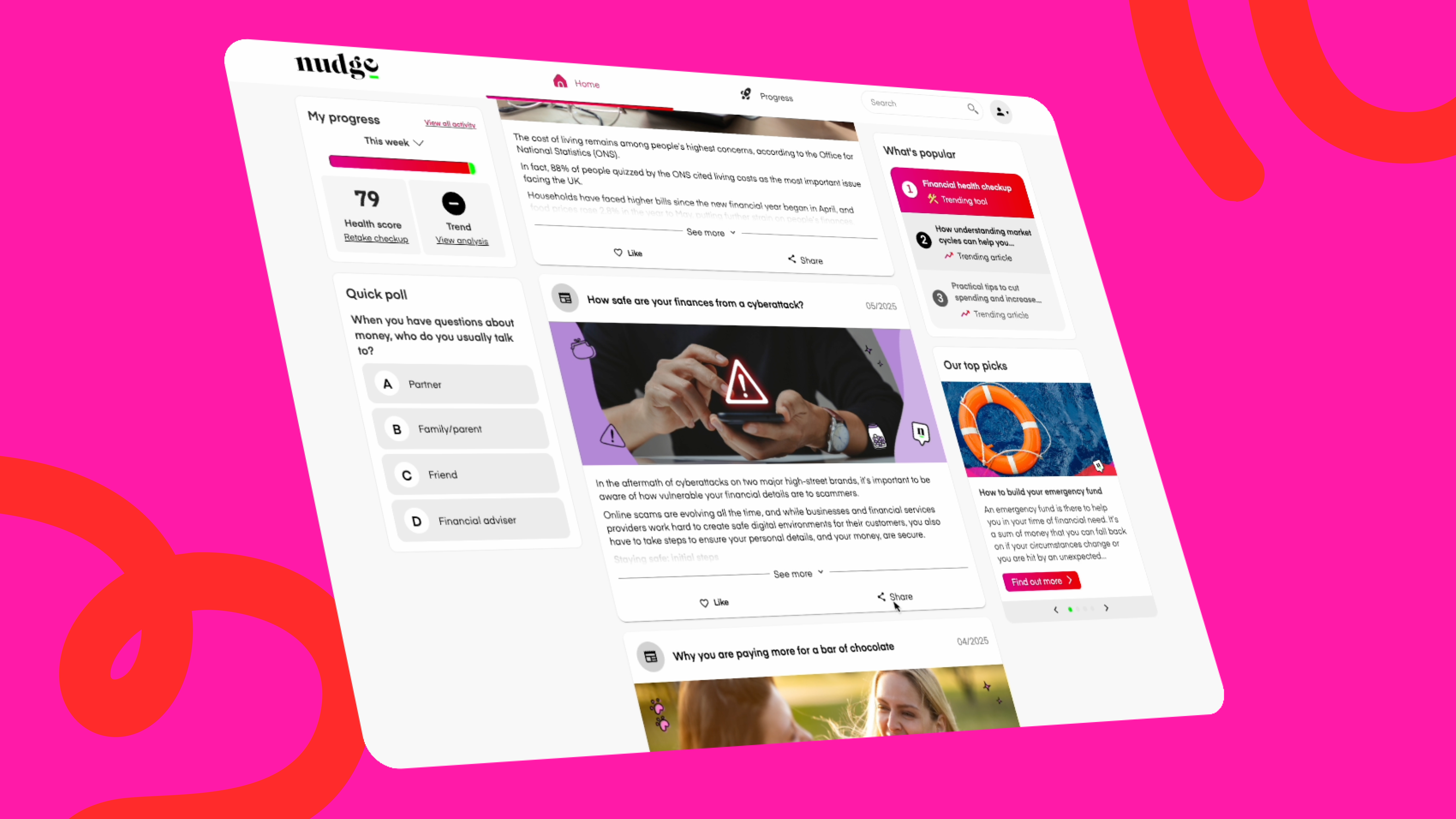 At the core of your global financial wellbeing program, nudge’s impartial financial education platform empowers your people to take control of their money.